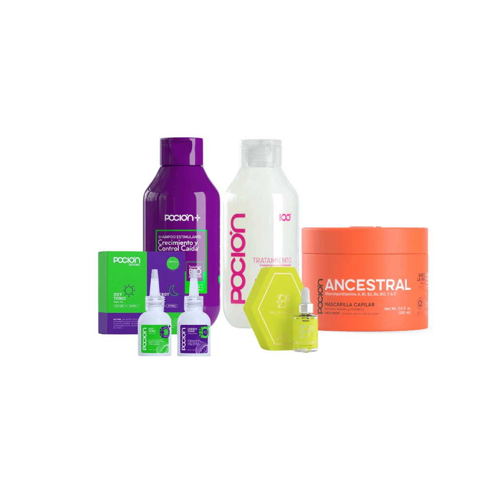 Un kit completo diseñado para acelerar el crecimiento, detener la caída, reparar daños químicos y fortalecer el cabello desde la raíz.