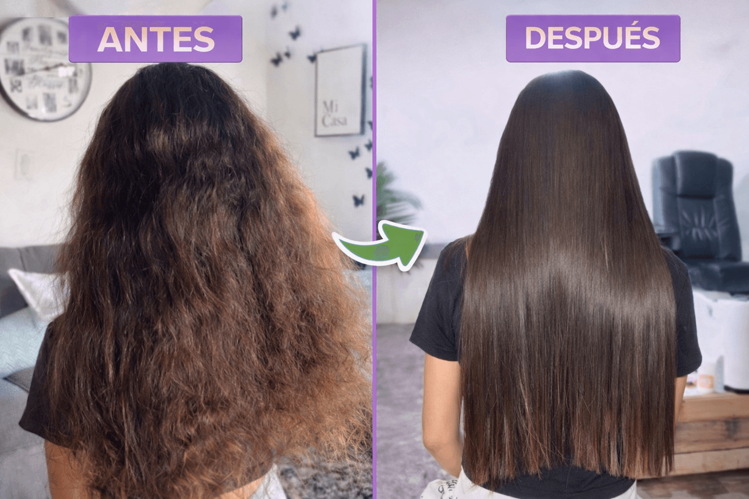 Cabello liso, renovado, suave, brillante y con apariencia saludable.