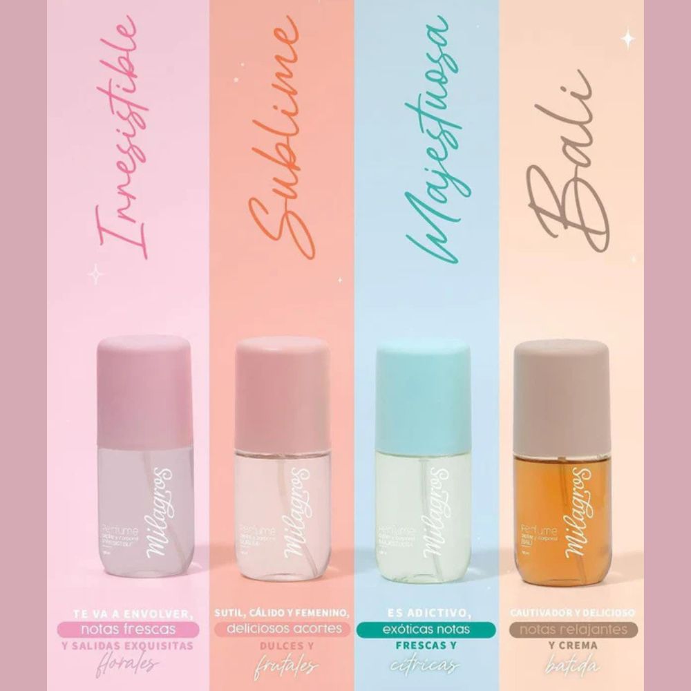 El Perfume Capilar Majestuosa de Milagros es una fragancia diseñada especialmente para el cabello que refresca, protege y realza su belleza, envolviéndolo con un aroma fresco, cítrico y elegante que dura por horas.